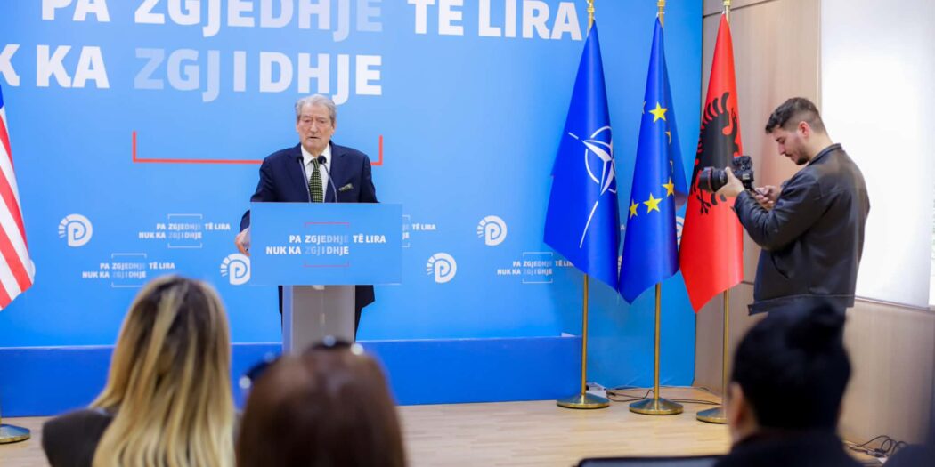 Kryetari i PD, Sali Berisha, në fjalën e mbajtur para qytetarëve në ‘Foltoren’ tek kryeministria, …