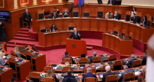 Lideri i opozitës, Sali Berisha, gjatë fjalës së tij në Kuvend, duke ju drejtuar deputeteve …