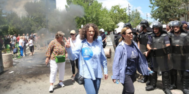 Ashtu si protestat e tjera Malltezi ka marrë me vetë një mesazh për lirimin e liderit të PD-së. Ndryshe nga herët e tjera që kishte veshur një bluzë të stampuar me shkrimin ‘Free Berisha’ sot ajo ka vendosur në veshje një ngjitëse me të njëjtin mesazh.