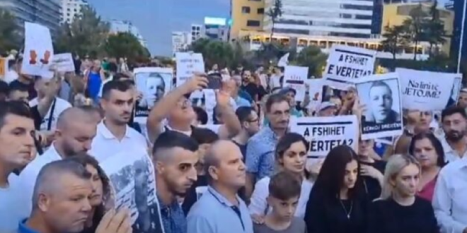 Me pankarta dhe parrulla në duar, “Kur krimi vret, shteti hesht” dhe “Kundër gangove me pushtet”, ata kërkojnë drejtësi për vrasjen e babait të dy fëmijëve, ngjarje kjo e ndodhur në Pogradec.
