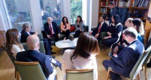 Kryetari i Partisë Demokratike, Sali Berisha, priti në një takim në zyrë një përfaqësi të …