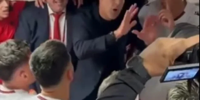 Në një video të publikuar nga “Top-Channel”, dëgjohet edhe tekniku brazilian “Do t’iu lë vetëm, por…”, mirëpo lojtarët shqiptarë nuk e lejuan pasi s’i ndalën festimet.