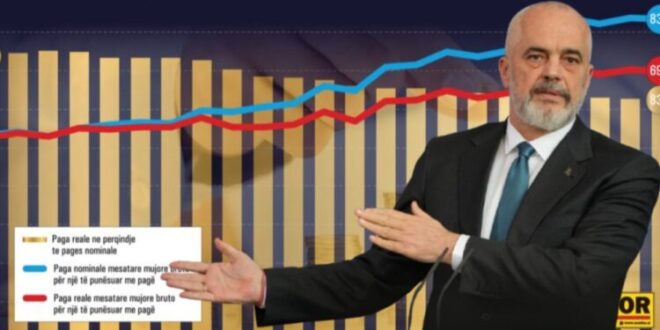 Diferenca ndërmjet pagës reale dhe asaj nominale po thellohet për shkak se rritja e tyre nuk erdhi nga produktiviteti në ekonomi, por nga presionet e fuqisë punëtore. Rritja e pagave me vendime e stimuloi edhe me shume rritjen e çmimeve duke e ulur në vërtetë vlerën reale të pagave. /Monitor
