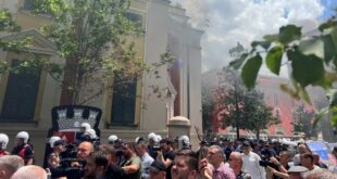 Protesta para bashkisë së Tiranës u ndez nga dhuna policore. Policia ndërpreu fjalimin e Belind Këlliçit duke lëshuar gaz dhe tymuese në drejtim të demonstruesve, ndërsa këta të fundit rrëzuan pengesat e hekurit rreth godinës dhe i vunë zjarrin disa gomave në mënyrë simbolike. Në ato momente, e mori fjalën …