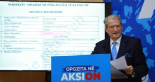 Kryetari i PD, Sali Berisha ka dalë në një konferencë për shtyp për aferën 1 miliard euro. Berisha tha se, ajo që ndodhi me djegësin e Tiranës ishte amnistia e vjedhjes së shekullit. “Ashtu siç kisha paralajmëruar në mënyrën më të përsëritur në këë sallë, ndodhi amnistia e vjedhjes së …
