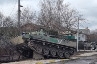 Një kovoj rus është shkatërruar në një qytezë afër Kyivit, ndërsa mediat kanë publikuar pamjet …