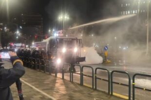Policia në Tiranë përdori gaz lotsjellës dhe topa uji të premten gjatë përplasjeve me protestuesit …