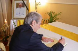 Kryetari i PD, Sali Berisha ka bërë homazhe për Papa Franceskun, pranë Nunciaturës Apostolike në …